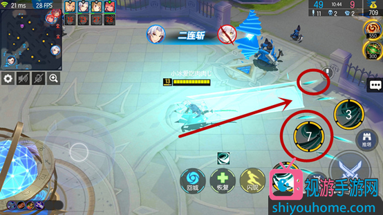 左目在沒有大招的時候,玩家們使用“二技能+普通攻擊+一技能”連招,這是最常見的消耗技能連招,在前期不能直接秒掉敵人,但是可以不斷的使用技能消耗,這樣可以創造擊殺機會。
