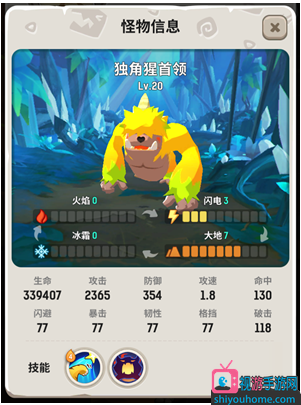 寵物:獨角猩首領(lǐng)屬性閃3地7,寵物完美克制火閃。