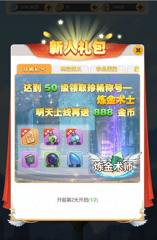 2、新手禮包中可以獲取神兵進(jìn)階藥和神兵技能書(shū)