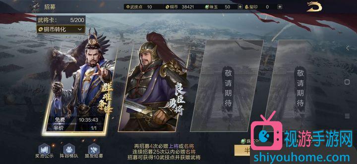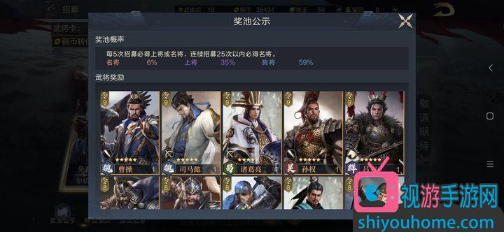 每5次招募必得上將或名將,連續(xù)招募25次以內(nèi)必得名將。
