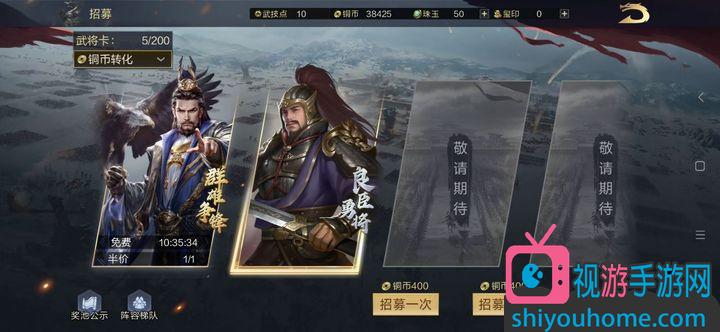 該獎池招募還可獲得10武技點(diǎn),可以用來升級武將技能。
