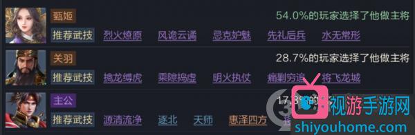 主打控制,犯顏激辯、先禮后兵;打傷害,烈火燎原、風詭云譎;打輔助,源清流凈(如果搭配主公,一般由主公帶這個武技)