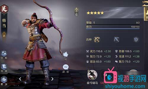 1.韓當在游戲中的定位是“武”。但是韓當除了滿級229.3的武力外,其余各項屬性都沒有超過200。面板屬性并不出眾。從整體上講,韓當的屬性并不足以支撐其與一流武將對抗。