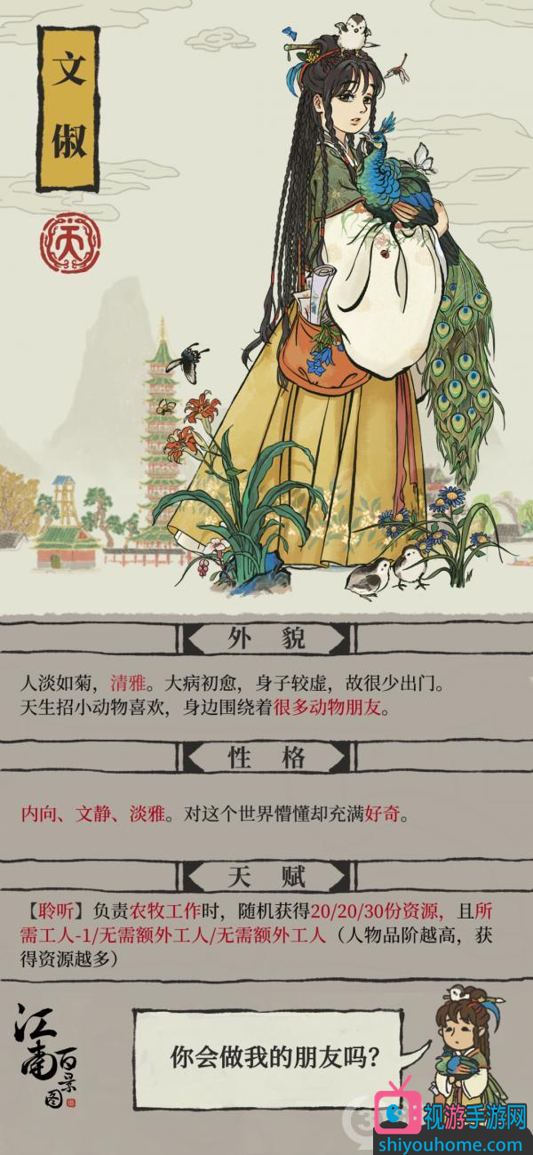 江南百景圖文俶珍寶搭配,江南百景圖文俶屬性介紹由視游手游網提供,主要幫助大家更好的馳聘戰場。感興趣的玩家一起來看看吧!