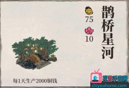 江南百景圖七夕活動(dòng)已經(jīng)上線了,七夕有全新的建筑,鵲橋星河,有的玩家已經(jīng)拿到了鵲橋星河了,那么,鵲橋星河這個(gè)建筑怎么使用呢,你知道鵲橋星河怎么擺放?江南百景圖新上的七夕限時(shí)建筑鵲橋星河。很家得到后不知道怎么擺放,下面小編給大家?guī)?lái)江南百景圖鵲橋星河擺放推薦,一起來(lái)看看吧。
