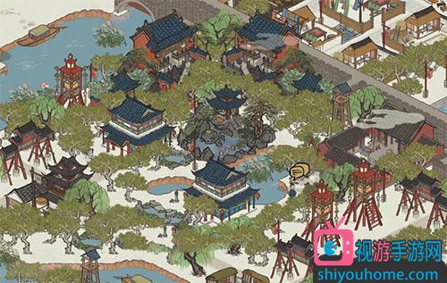 如圖所示,可以看到配合上這個湖心亭,還有很多的柳樹樟樹,加上一些其他建筑的點綴,看起來就非常適合了,這個搭配起來還是比較難得,但是一旦搭配好了,絕對可以大幅度的提高顏值。