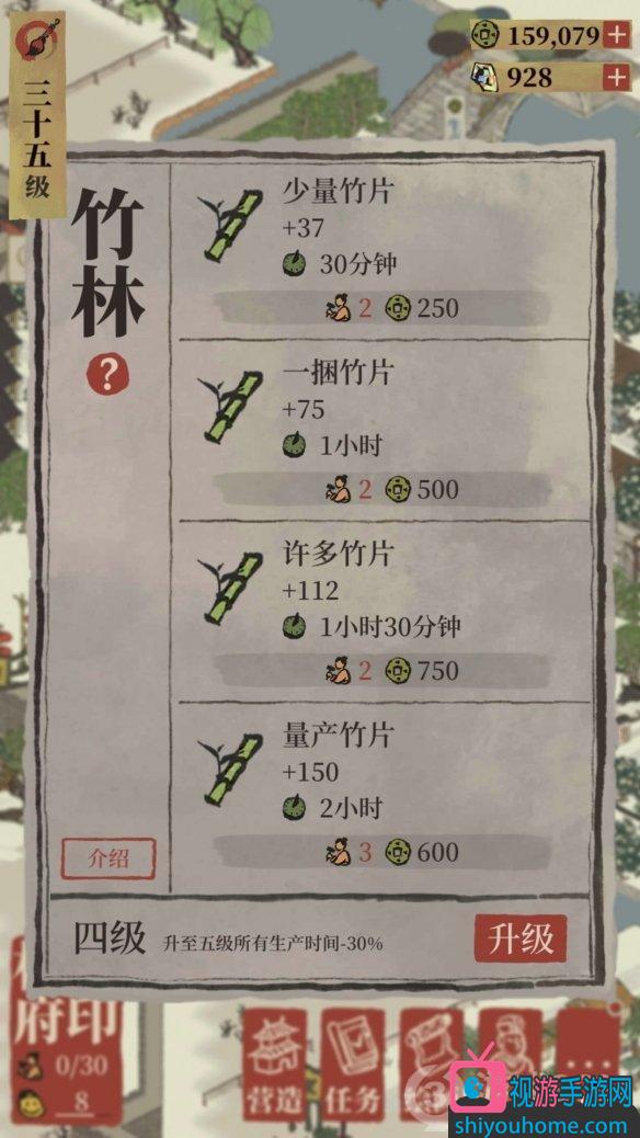 除了氪金,竹筍只有靠我們自己種竹子爆,為了爆出更多的竹筍,我陸續修建了30塊竹林。因為需要大量的人口所以還請杭州還在發展中的小伙伴不要太刻意的追求竹筍,隨緣就好,先賺錢開地吧。