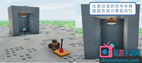 這時,我們可以使用“信號轉向器”來實現信號的轉向,我們來嘗試放置4個信號轉向器,并用精密儀器扳手把信號轉向器調整至對應的方向,使得信號可以繞過墻壁發射向門。