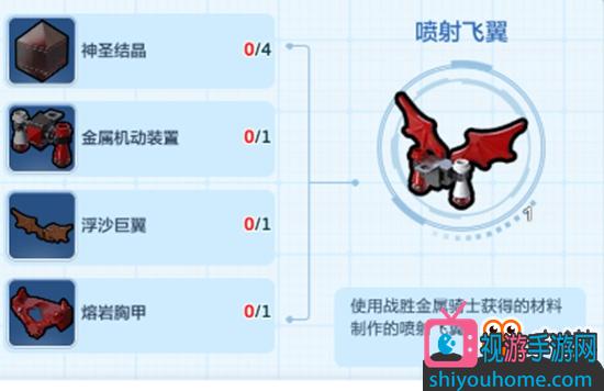 消耗4個神圣結晶,1個金屬機動裝置,1個浮沙巨翼,1熔巖胸甲在工作臺--裝備進行合成