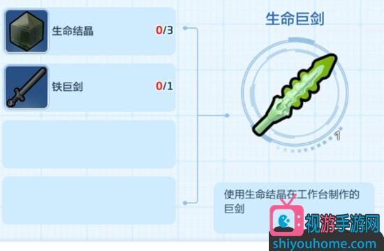 消耗3個生命結晶,1個鐵巨劍在工作臺--裝備進行合成