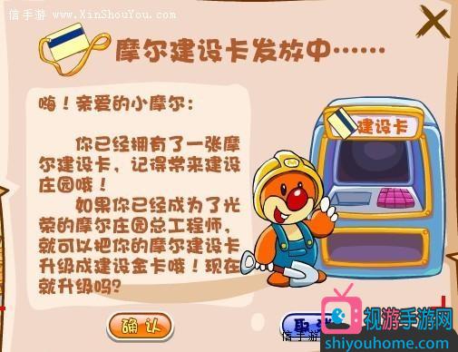 沒錯,很多玩家因為懶,所以基本就沒有去打工過。但是想要升級建設卡,就必須經常去打工才可以,通過打工,領取搬木頭等任務來積累經驗,然后等你升為了摩爾莊園的總工程師之后,就可以將自己的摩爾莊園建設卡升級為建設金卡了。說真的目前游戲中擁有建設金卡的玩家真心不錯,因為很多玩家一來不知道建設卡是靠打工升級的;而來也是懶,不想要打工。