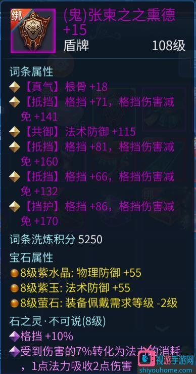 說到單手就必須提一下副手防具的選擇,不得不說的一點是,目前手游是大幅元素抗的時代,副手防具無腦三大幅以上是個比較好的選擇,不過......我選擇了四格擋,這是我的盾牌