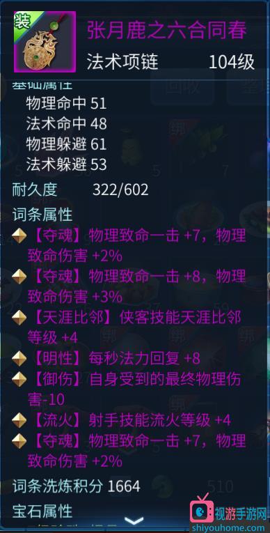 之后,為什么選擇強眩暈,其實主要還是為了強眩暈帶的命中率的增加,俠客的命中一直是一個大問題,重點是一時半會還不是很容易堆起來,所以將目標放在了強眩暈上,并且,天涯比鄰是倩女中范圍最遠的單體控制技能,這個技能在比武中對輸出和奶媽的威脅極大,是核心技能,所以這個技能的命中率至關重要,并且,單挑中,這也是俠客唯一一個拉近同其他職業(yè)距離的技能,重要性不言而喻,我的項鏈固定了雙致命和天涯比鄰技能等級,可以作為一個參考