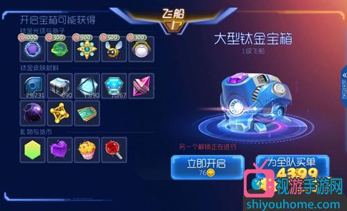 小型鈦金寶箱、普通鈦金寶箱、大型鈦金寶箱、稀有鈦金寶箱4種類型,級別越高解鎖時間越長,獲得的道具也越多。