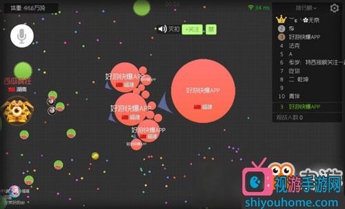 通過小球拉大地圖擴張視野,觀察附近的情況,如上圖,我的下方有大球,左側的球在炸刺,這種情況就可以去左邊追殺正在炸刺的球。
