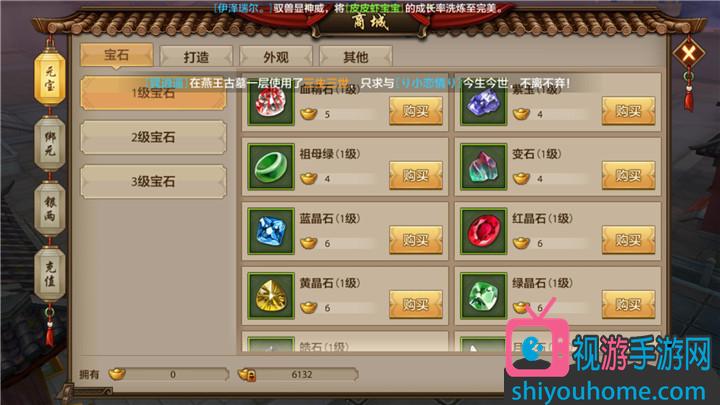 1、商城購買:在元寶商城可以買到1級-3級的各種寶石,五顆相同的寶石可以合成一顆更高級的寶石,而少俠可以通過充值獲得更多的元寶。