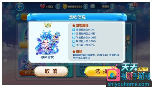 首先雪女是依靠飛行得分加成的寵物;所以適合配沖刺型人物;而且擁有將閃電怪變成高分雪花的能力也就是破壞障礙物;所以搭配小丑和伯爵加分不錯;但她屬于保命類型的寵物得分并不是特別的高