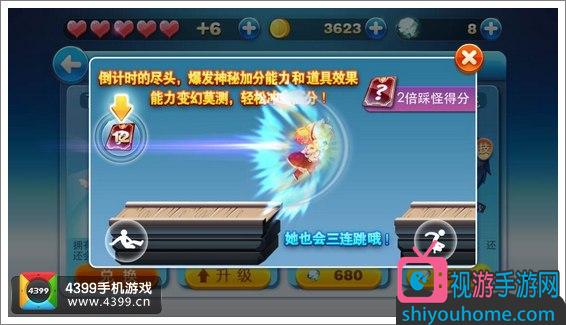 閃電騎士的特殊技能其可以更快進入超級獎勵模式,也就是說下方的獎勵條到達三分之二左右就可以觸發超級獎勵模式,配合閃電豹的超級獎勵模式變大的效果可以輕松拿到高分!另外閃電騎士可以切換三連跳和滑翔模式,只要點擊左側的按鈕就可以切換,操作自如,再也沒有跨不過的坎。閃電騎士必將成為新一代的酷跑刷分之王。