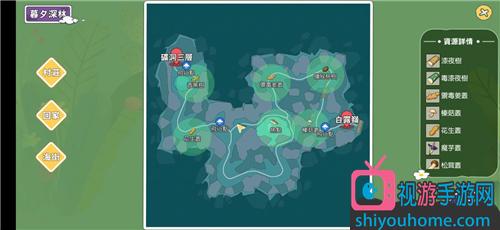 首先松茸分布在【暮夕深林】,白天一般在【花生叢】和【姜叢】這兩個毒區隨機刷新,多摘一些花生或者姜就蹲一蹲挺好出的。晚上一般上圖中的位置,會一直出現魔芋,一直采集魔芋就會概率出松茸。