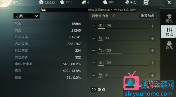 至于第二個加點方案,可以考慮一下全氣加點。全氣加點是比較極端的高輸出高奶量的加點方案,雖然總體氣血沒有第一個加點方案高,可是高奶量可以保證自身的氣血保持在穩定的安全值內,這個方案適合參與世界boss以及打俠士以上的副本。