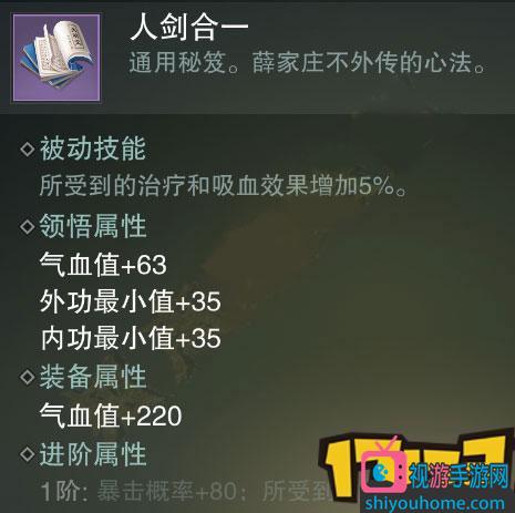 領悟屬性:氣血值+63、外功最小值+35、內功最小值+35