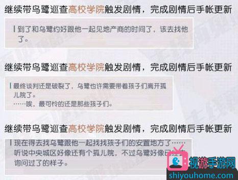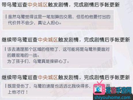 第三步:帶烏鷺巡查中央城區(qū)觸發(fā)劇情3次,完成劇情后手帳出現(xiàn)相應(yīng)更新